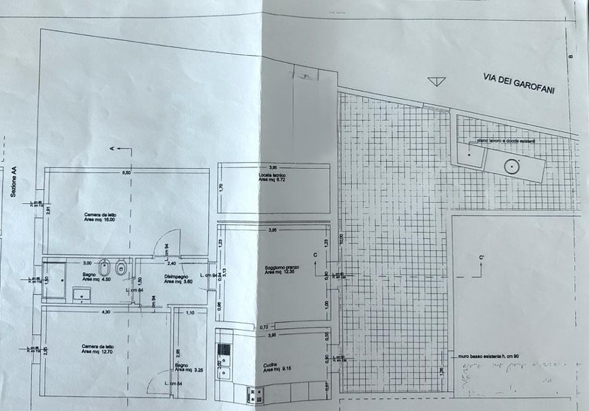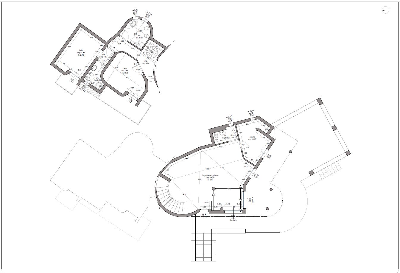 Elemento architettonico di rilievo, corredato da planimetrie e disegni progettuali originali, che ne attestano il valore storico e la cura progettuale.