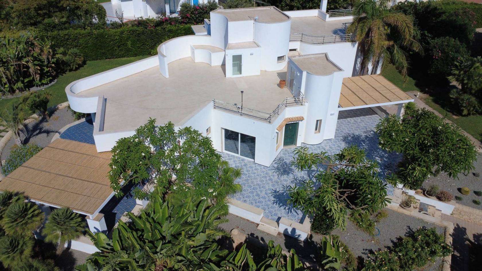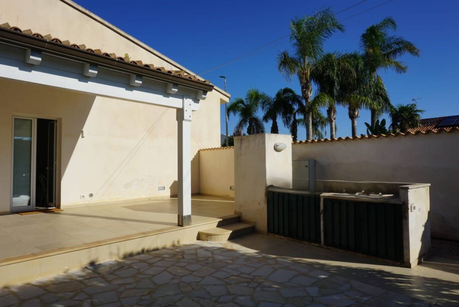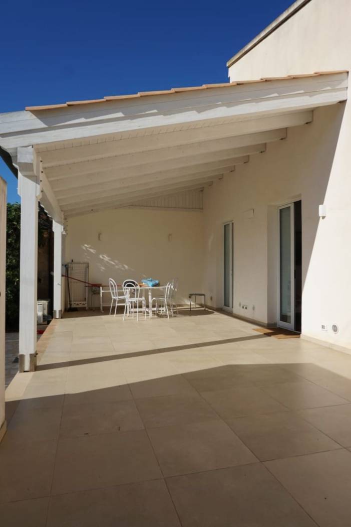Esternamente, una veranda coperta di 30 mq e un'area verde con cucina esterna per vivere all'aperto in totale comfort.