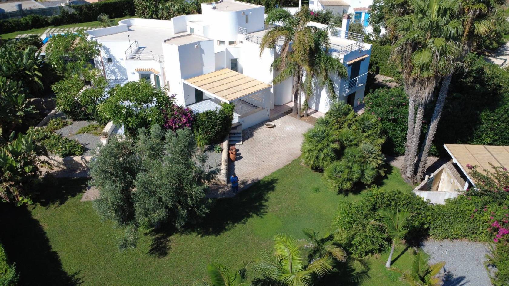 La villa si trova a Caucana – Punta Braccetto, in una zona residenziale esclusiva, a pochi passi dal mare (300 m) e a breve distanza da: